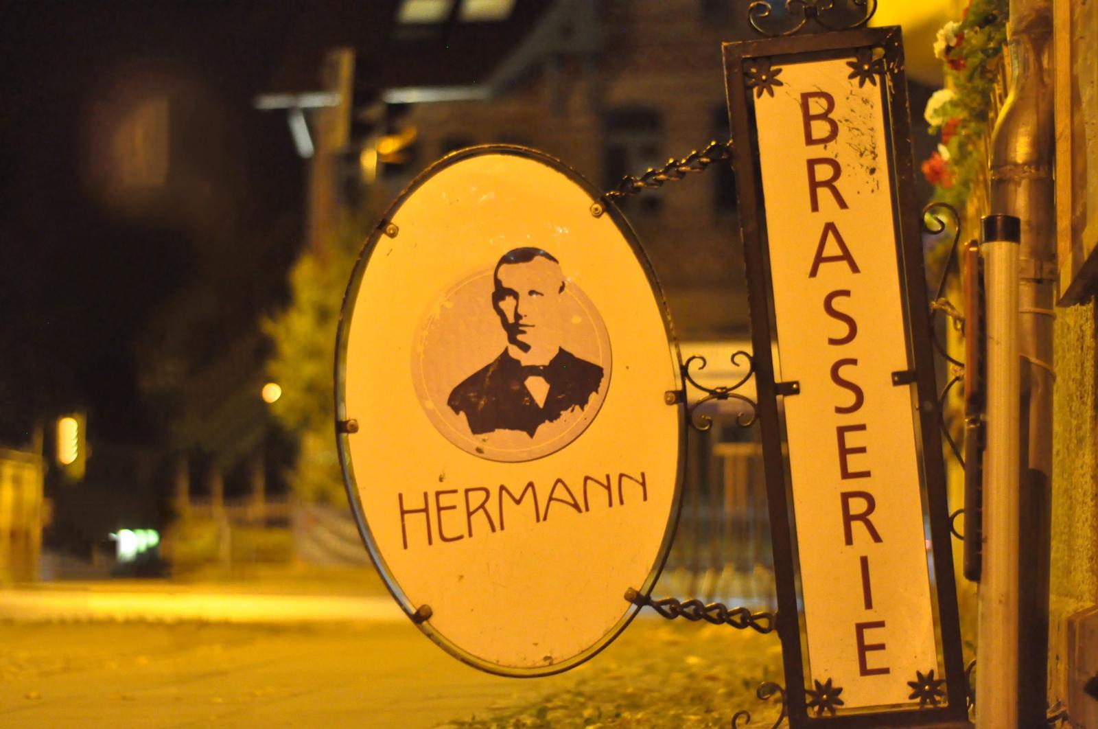Die Brasserie Hermann von vorne....so geht Latte Macchiato...Hermann-Schild am AbendDer Blaue Raum....hier ist der Eingang...Tresenansicht vom blauen Raum ausdas sind wireine HochzeitsfeierHochzeitstorteSchwarzwälder-Kirsch-Torteder Saal bei einer FeierWie wär´s mit dem Roten Salon?man kann auch im Roten Salon feiernunser Innenhof einmal......und nochmalwenn man das sieht, nur noch über die Straße...Nahaufnahme...die Wandblumen werden gemalt......gebrannte Mandeln und Glühwein......herbstlich dekoriert......alle mal versammelt...Arthur und Band und wirEine unserer vielen Varianten für HochzeitenUnser ganz eigenes Vogelnest im Aschenbecher :)